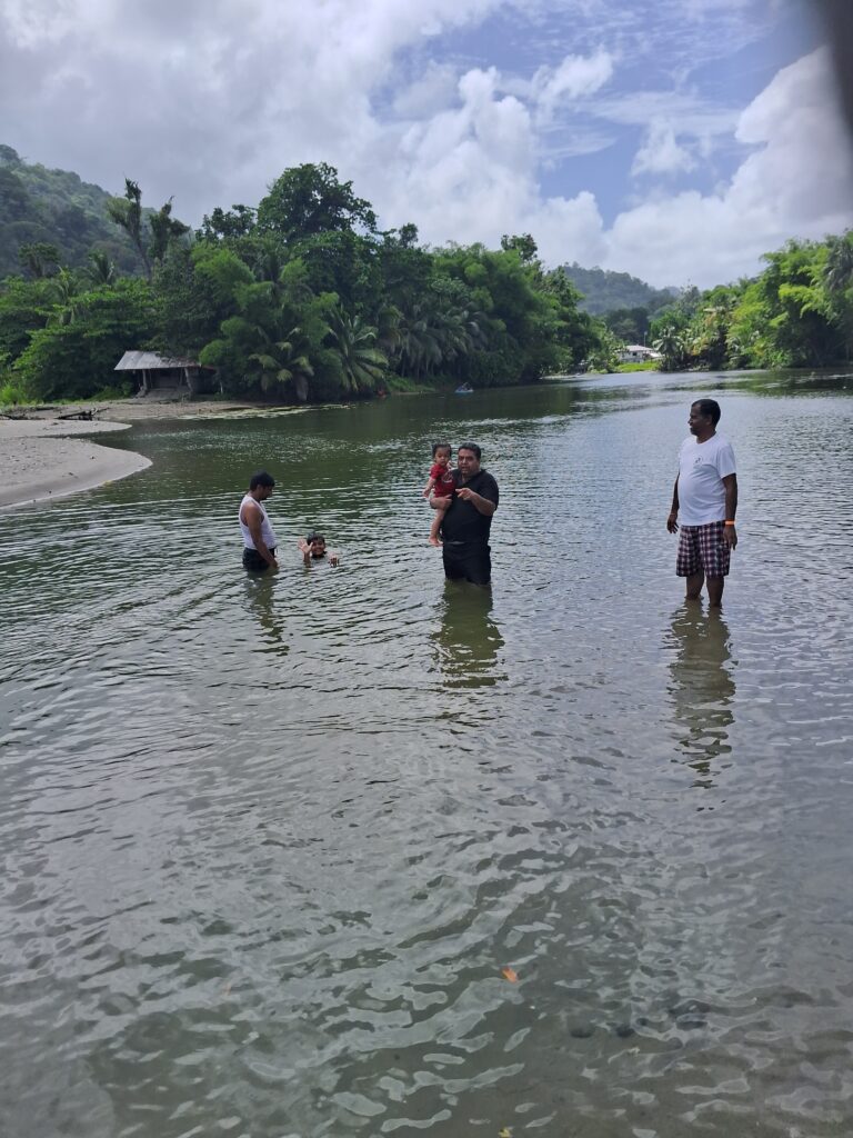 Visitors Bathe at the Mouth of the River at Grande Riviere