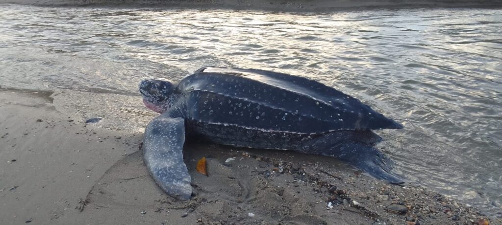 Leatherback Turtle Making Its Way Back to the Ocean After Laying Eggs Overnight